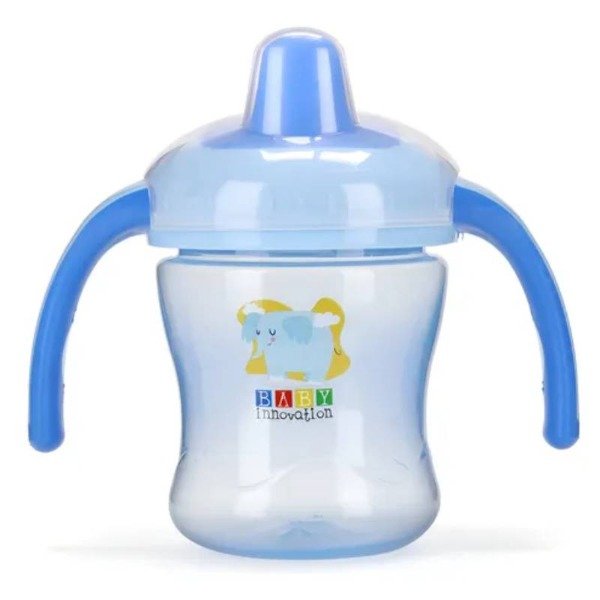 • Vaso con asas y tapa con tetina de silicona, ideal para cuando comienzan a beber líquidos de manera independiente.