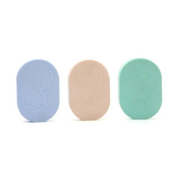• En 3 colores: celeste, verde y rosa.