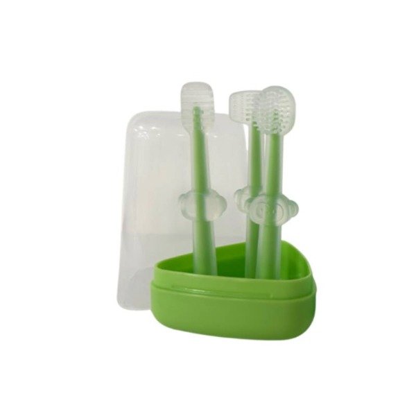 • Incluye 3 piezas: masajeador dental, limpiador de lengua y cepillo de cerdas.