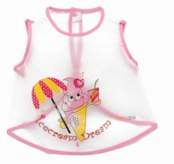 Baberos vinílicos PEVA vestiditos con abrojo. Estampados.