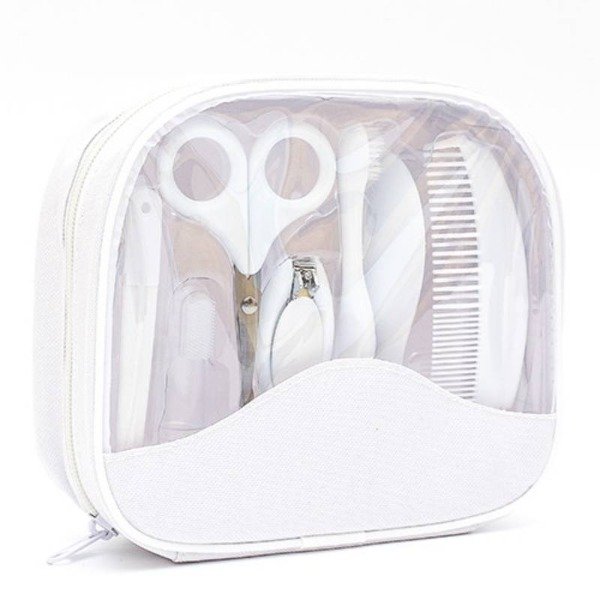 • 7 artículos: tijera, alicate, lima, masajeador dental, cepillo, peine y cepillo de dientes.